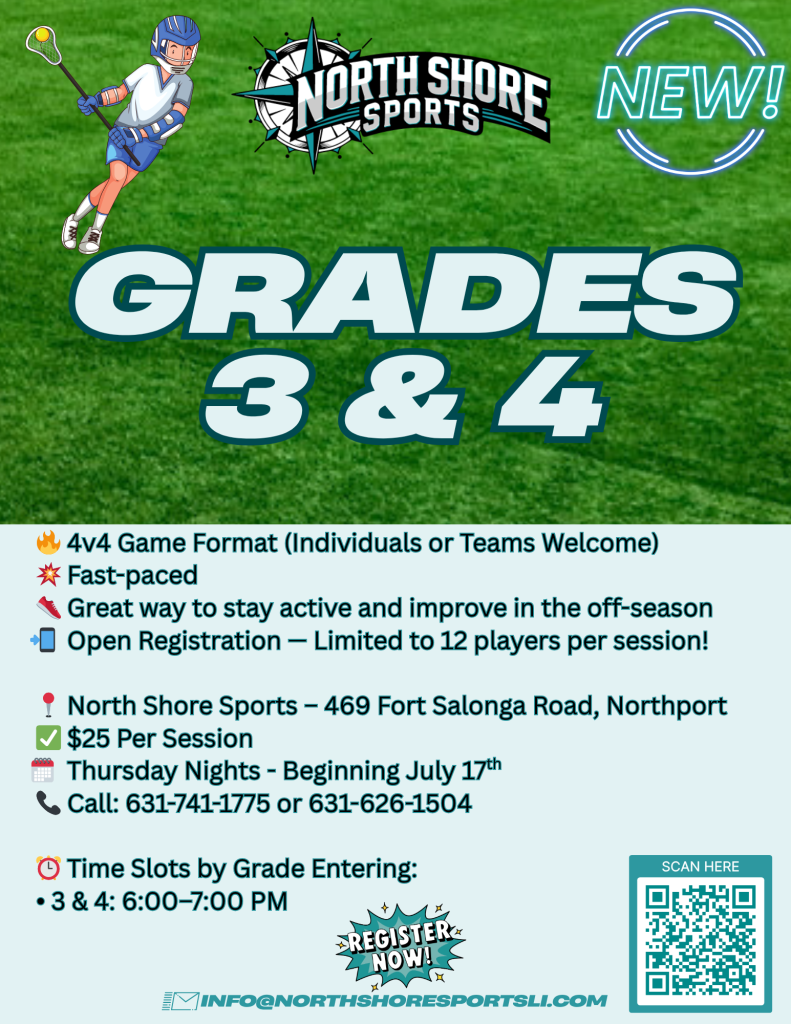 Lacrosse 4v4 Homepage Lacrosse 4v4 Thursdays - Starting July 17th Grades 3 & 4 Registration Grades 5 & 6 Registration Grades 7 & 8 Registration